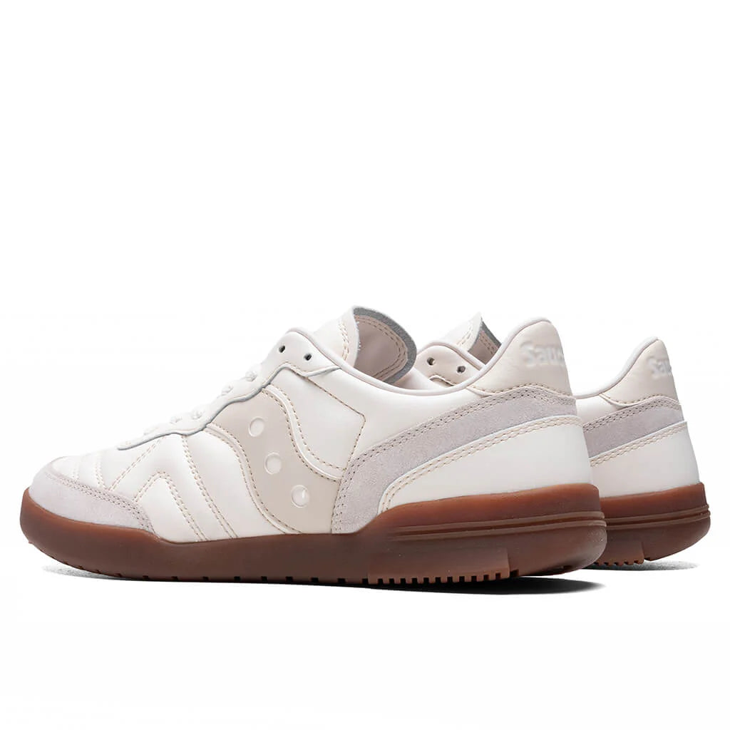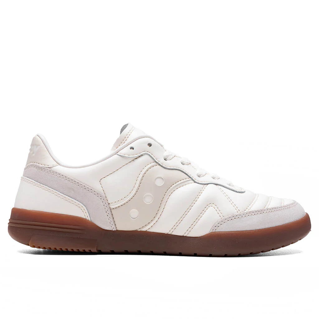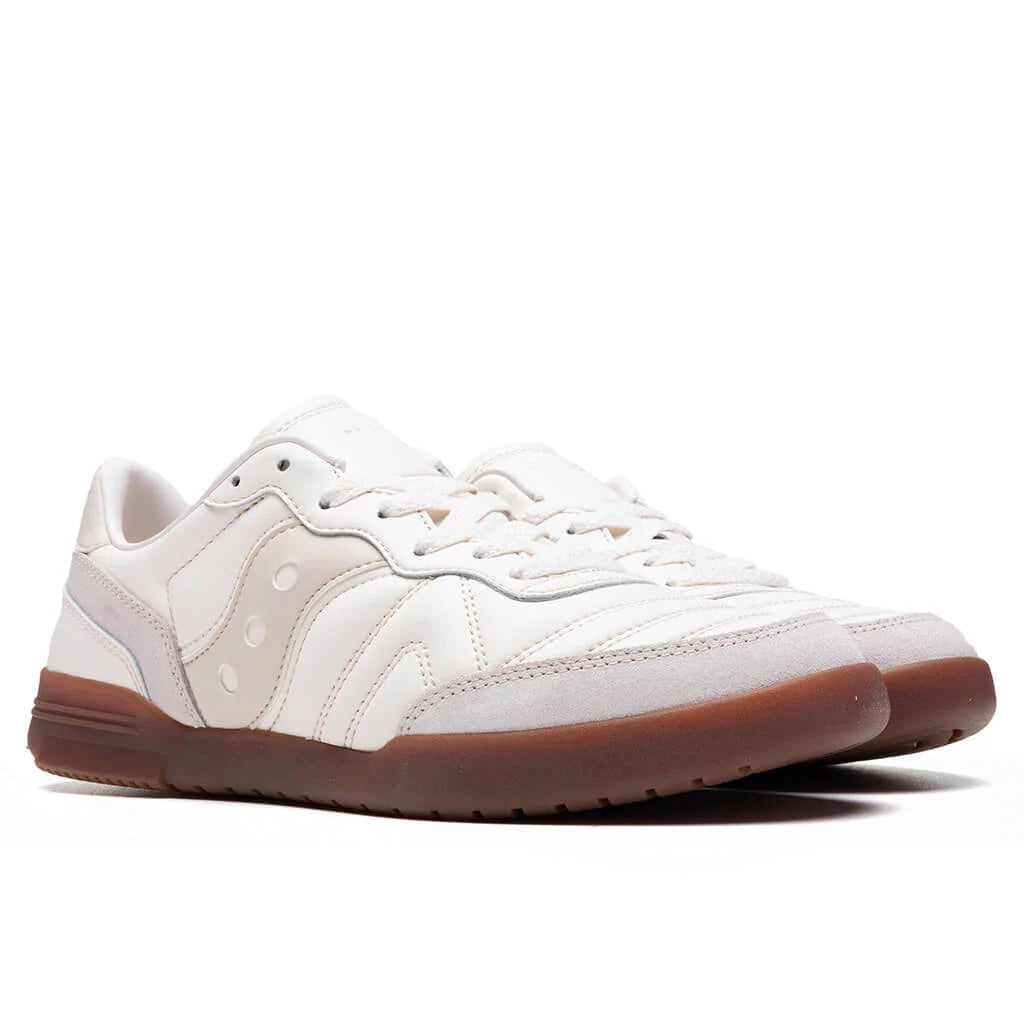 The Saucony 586I draws inspiration from indoor football heritage, bringing authentic design with street-ready energy. A Leather upper delivers clean and smooth style. Embossed Saucony logos on the side gives a timeless design. Cupsole construction allows durability and support.