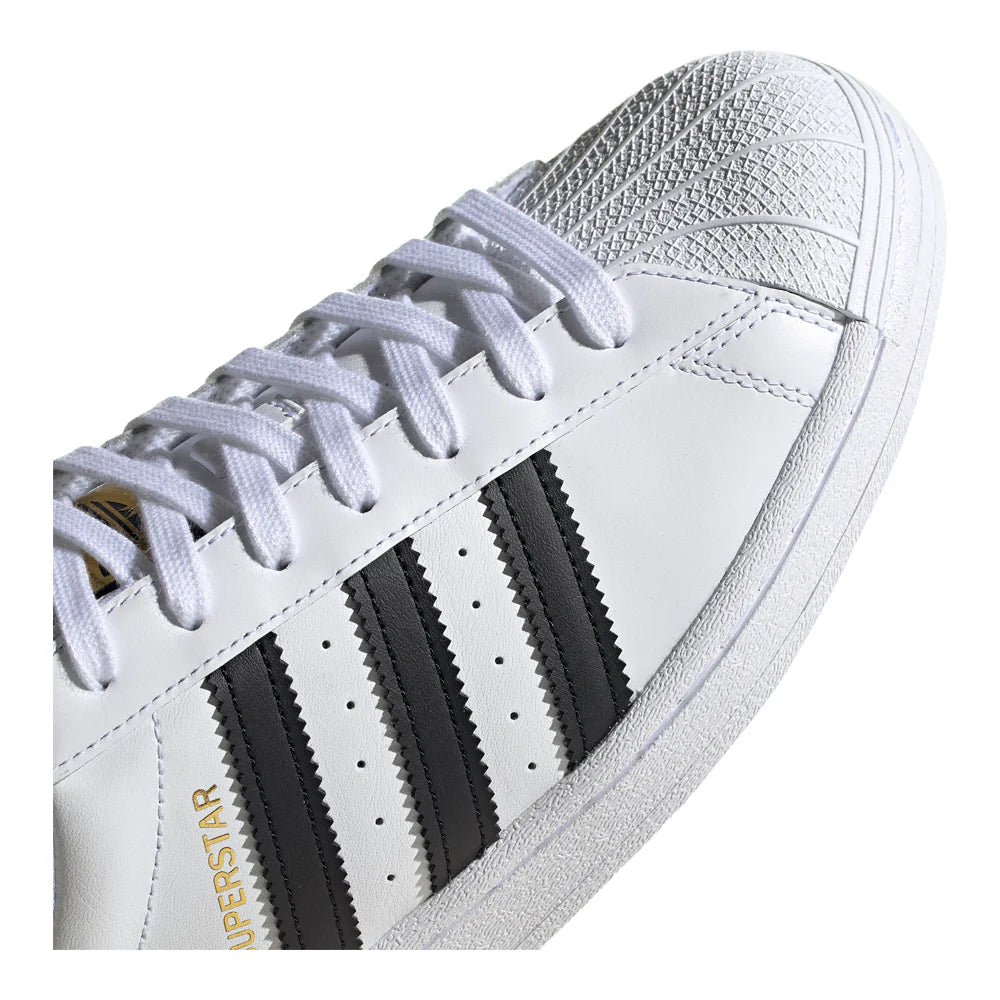 Originally made for basketball courts in the '70s. Celebrated by hip hop royalty in the '80s. The adidas Superstar shoe is now a lifestyle staple for streetwear enthusiasts. The world-famous shell toe feature remains, providing style and protection. Just like it did on the B-ball courts back in the day. Now, whether at a festival or walking in the street you can enjoy yourself without the fear of being stepped on.