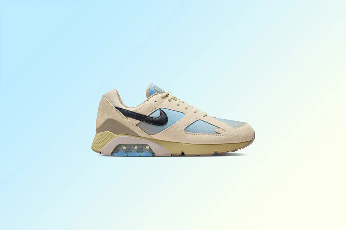 The Nike Air 180 reemerges in a refined mix of textures and tones, blending its groundbreaking cushioning with premium design updates. This version reimagines the 1991 icon with a textile base and soft suede overlays, shifting away from the original's synthetic build. A gradient upper flows from tonal khaki at the toe to deep Psychic Blue, while subtle wood grain textures and a black leather Swoosh add tactile contrast. The signature 180-degree visible Air unit remains intact, set beneath a vintage-finished midsole and two-tone rubber outsole.
