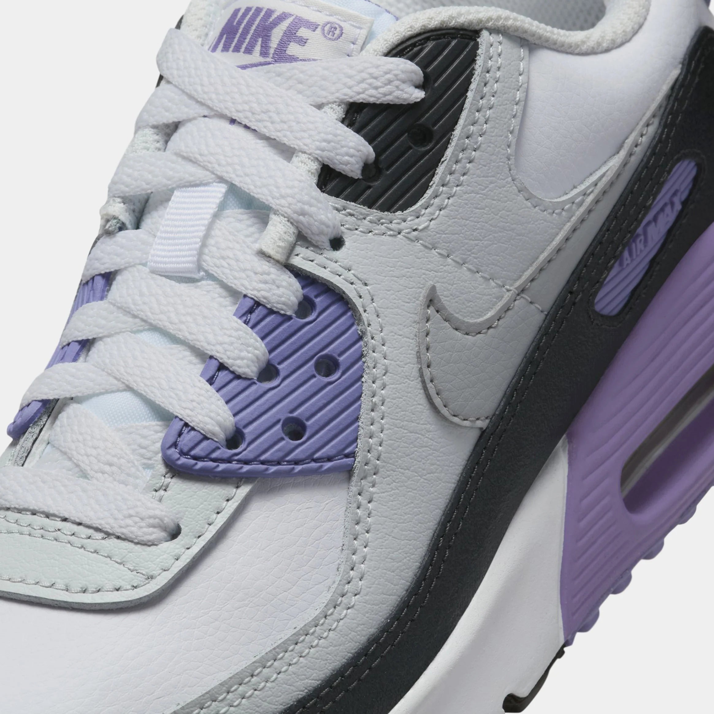 Air Max 90 Grade School Lifestyle Shoes (White/Dusty Amethyst/Photon Dust/Light Smoke Grey)