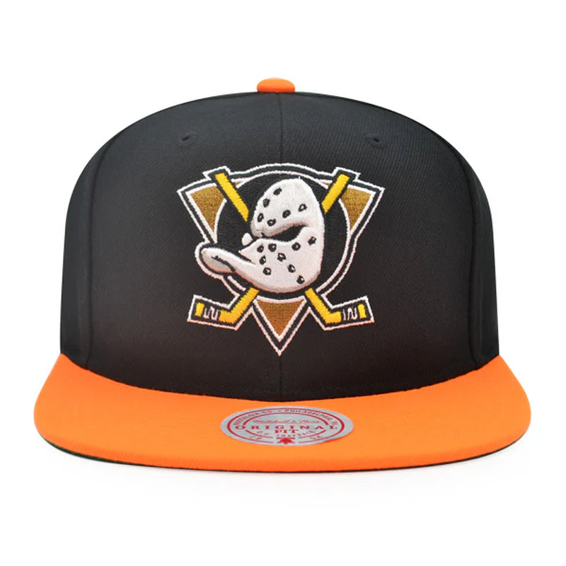 Anaheim Ducks Mitchell & Ness NHL Team 2 Tone 2.0 Snapback Adjustable Hat - Black/Orange