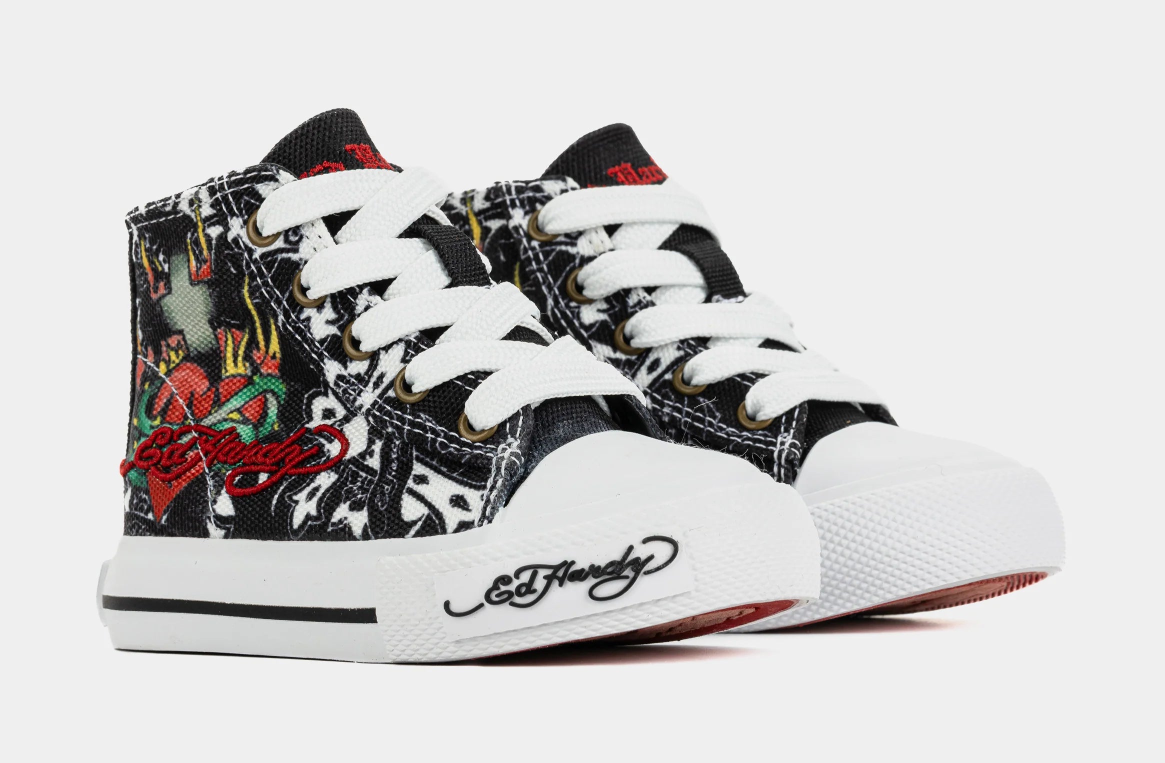 Black Cross High Top Infant Toddler Lifestyle Shoes (Black/White)