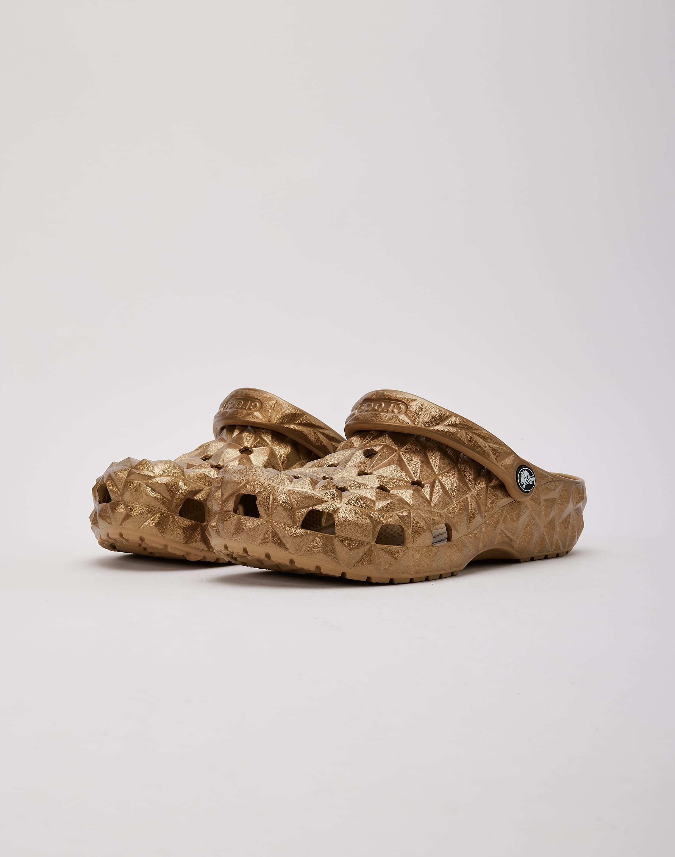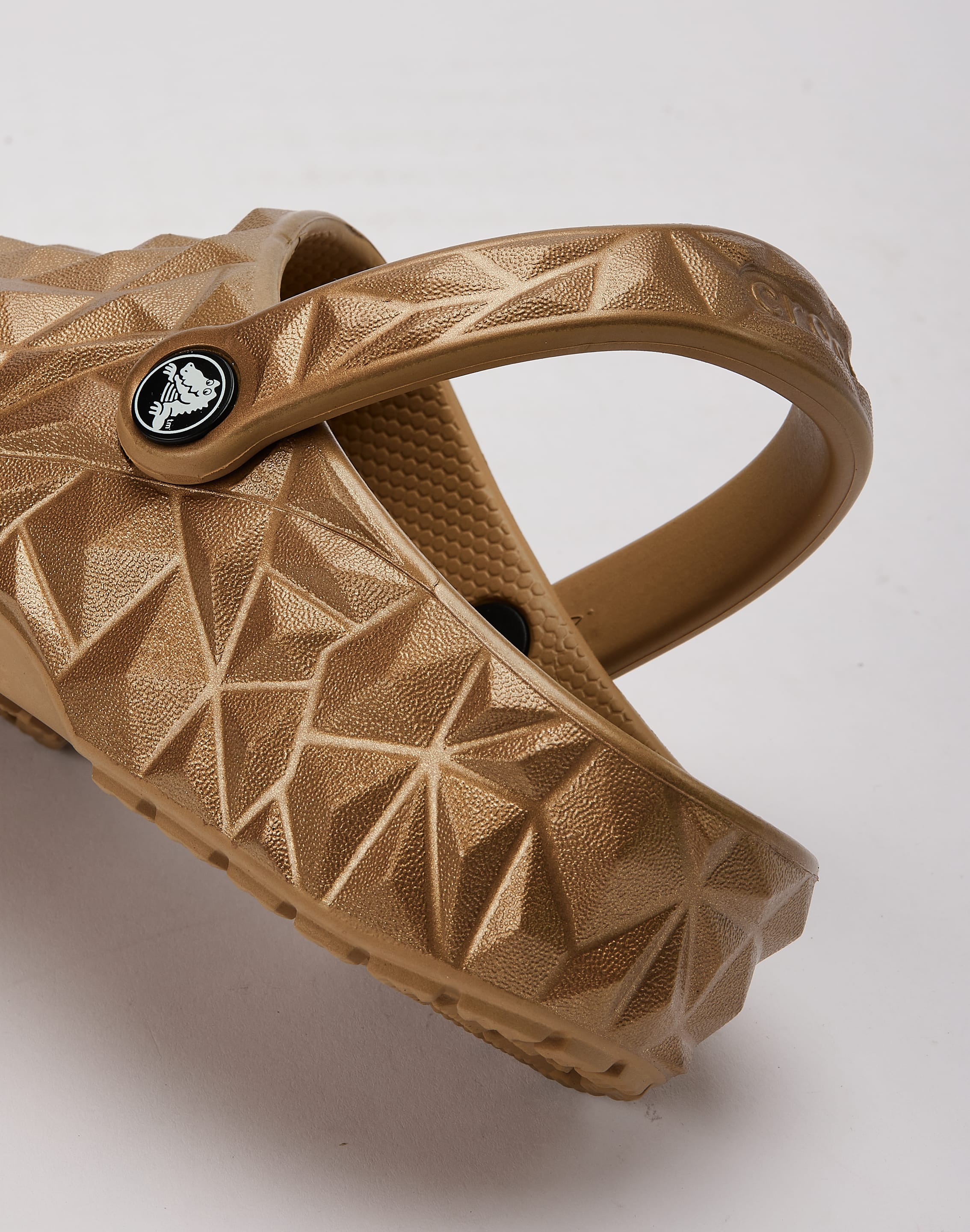 Crocs' Classic Clogs are original, comfortable, and versatile. They're made from molded Croslite material that's super lightweight and durable. Large ventilation holes provide breathability on warm days. This new pair features a striking geometric-molded design.