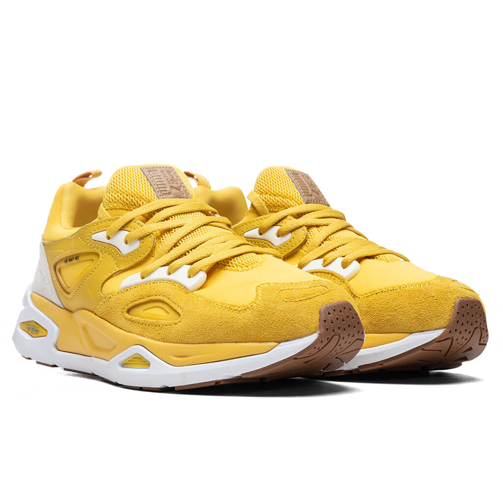 The Puma D. South TRC Blaze is a must-have sneaker for any footwear collection. Featuring a mesh upper with leather overlays, the lycra collar and tongue with mesh lining add additional comfort. The EVA midsole and TPU detailing make additional detailing, while the Puma branding makes further impressions. TRC branding resides at the tongue and heel, while the rubber outsole underneath finishes the design.