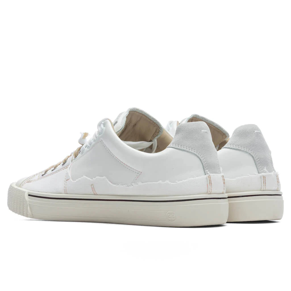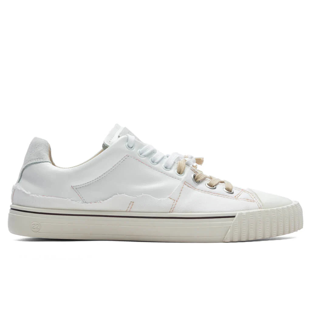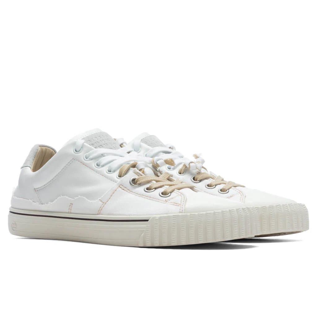 French fashion house Maison Margiela introduces the Evolution Sneaker. Taking on a leather upper, these lace-up sneakers utilize canvas overlays for additional dimension. The two-tone laces also make a statement. The rubber toe cap and rubber outsole wrap up the remainder of the silhouette.