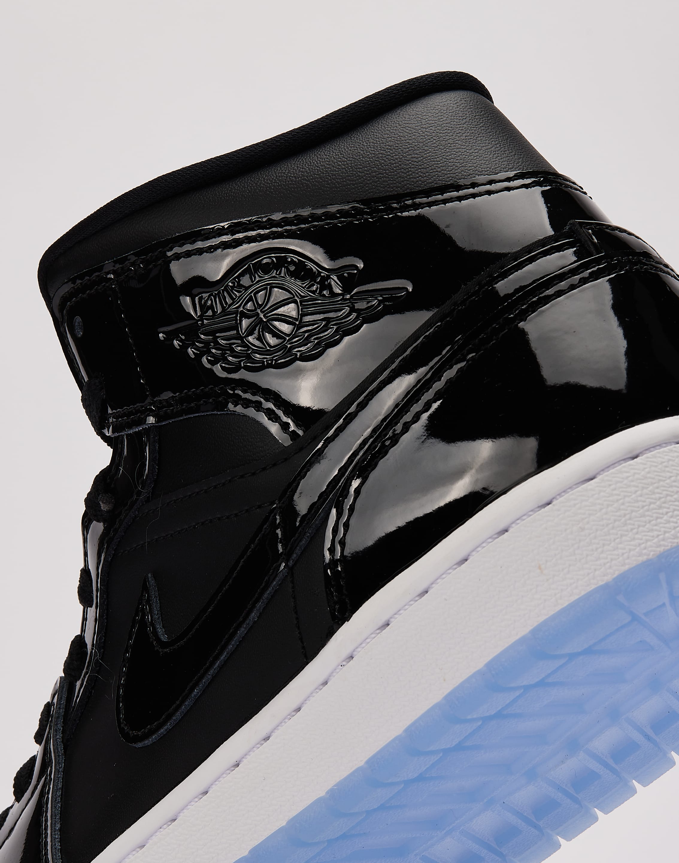 It's the silhouette you know and love, now in a casual mid-cut form. This special-edition colorway features black patent leather overlays and an icy rubber outsole reminiscent of the Air Jordan 11 Retro "Space Jam."