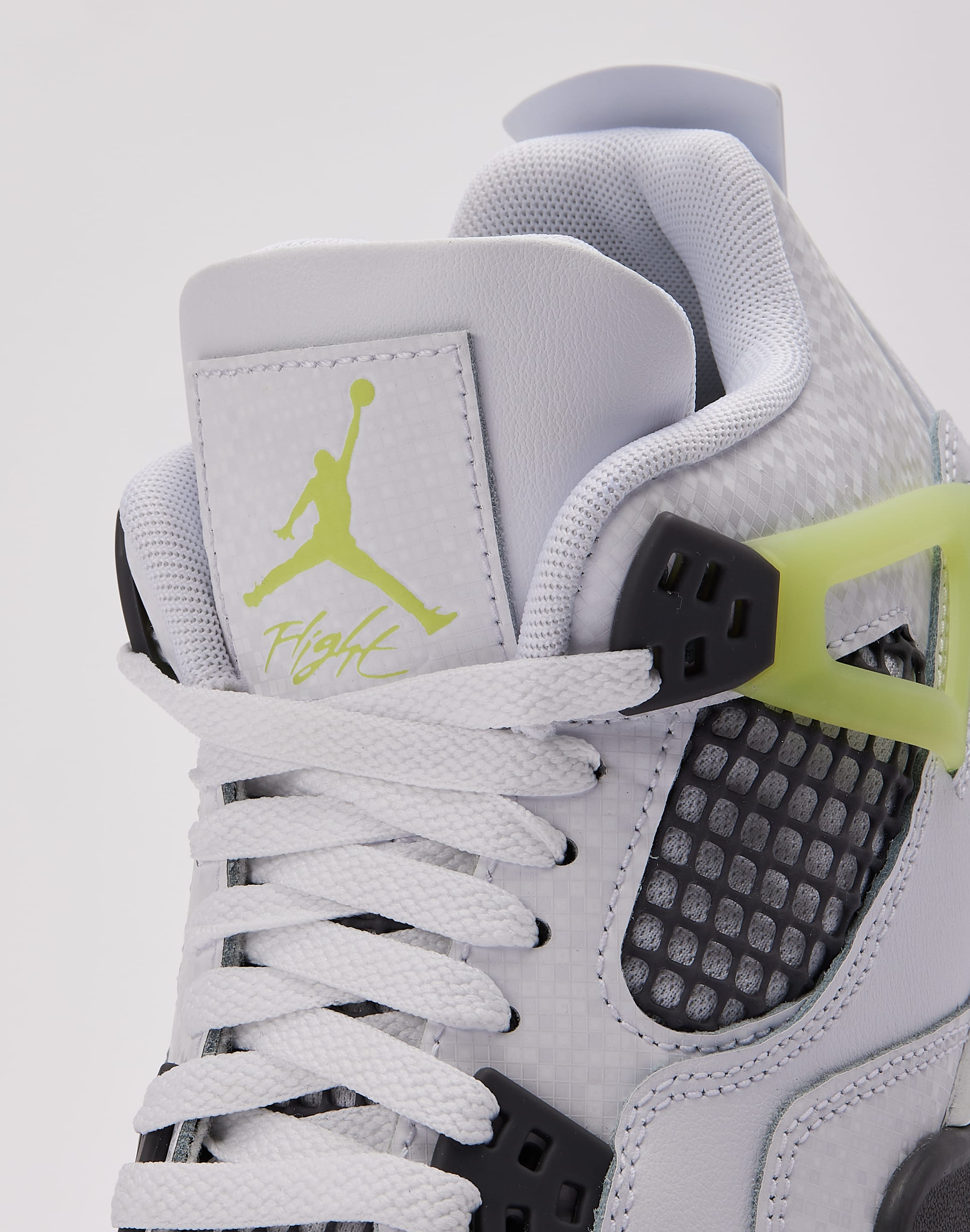 The Air Jordan 4 triumphantly returns with a new "Light Lemon Twist" color scheme. This colorway features a white leather upper contrasted with "Light Lemon Twist" and grey accents.