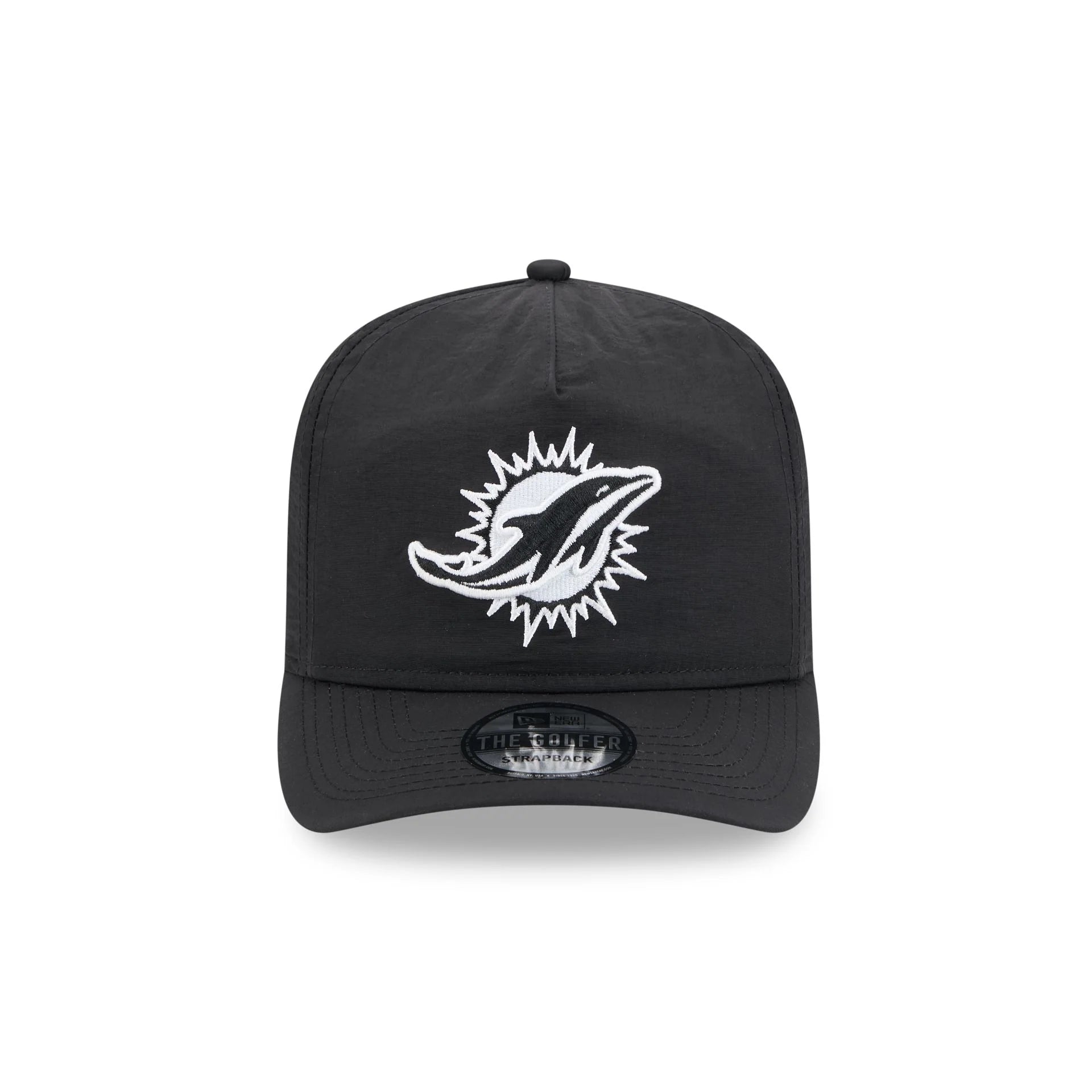 The Miami Dolphins Everyday Nylon Black Golfer features an embroidered Dolphins logo at the front panels with an adjustable strapback closure at the rear and a gray undervisor.