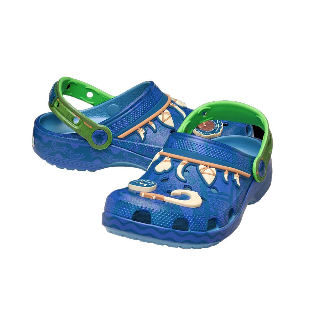 Let your little adventurer tell their story with the new Kids’ Disney Moana Maui Classic Clog. Beyond the Magical Hook, these clogs feature Jibbitz™ charms including the feared Kakamora and the trickster himself. Thanks to the light, durable Croslite™ material, journeys small and big will be done in comfort and style.