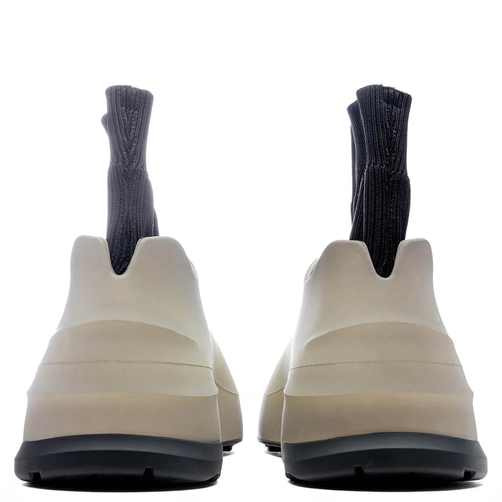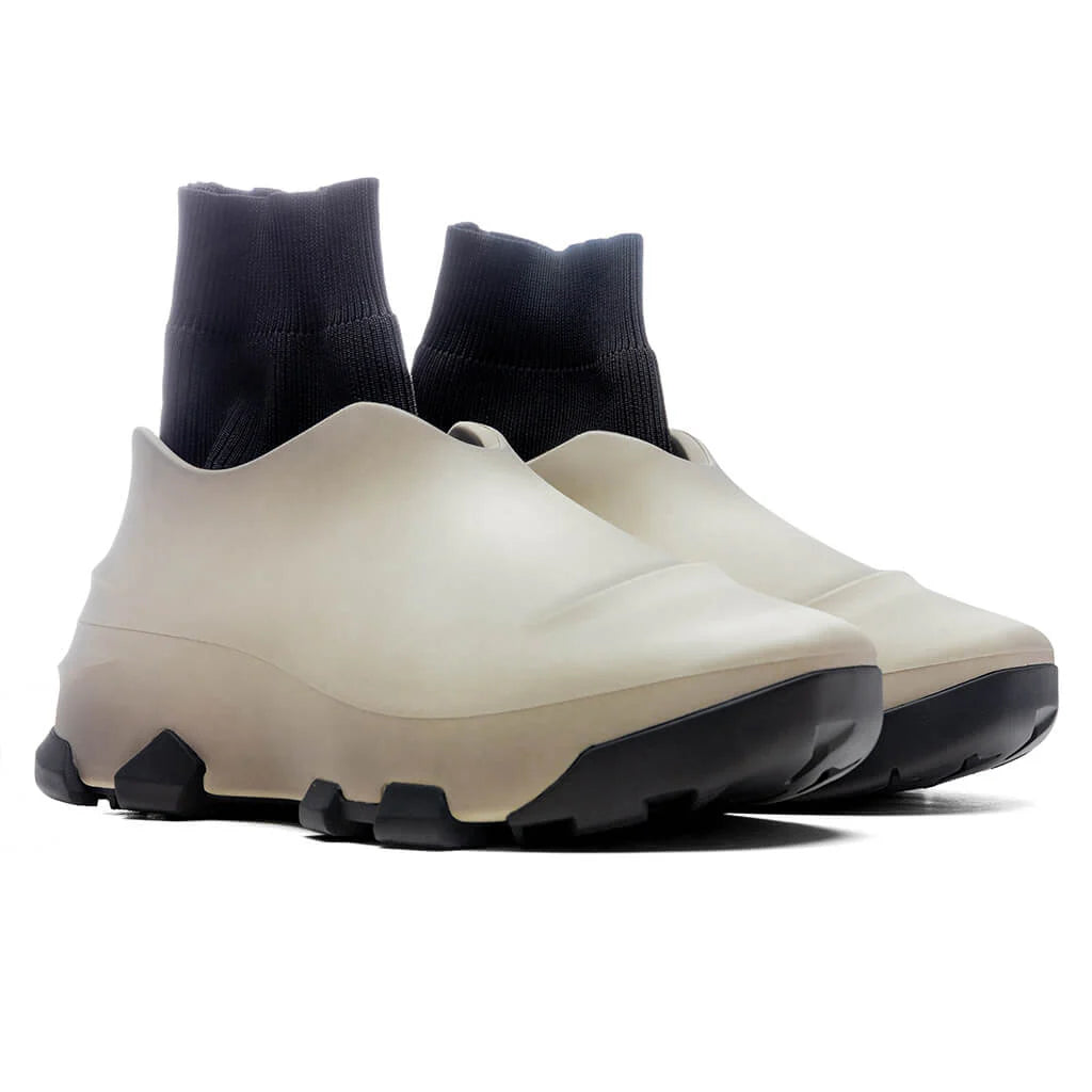 Elevated fashion label Givenchy introduces the Monumental Mallow Hybrid. Made from a blend of viscose, polyester, and polyamide, the inner lining of the shoes features calfskin leather for optimal comfort. Crafted in Italy, the shoes feature smooth matte rubber with a worn effect. Sculptural graphic lines are placed throughout, and the lightweight construction incorporates black ribbed knit socks on the inner portion. The black rubber outsole completes the look.