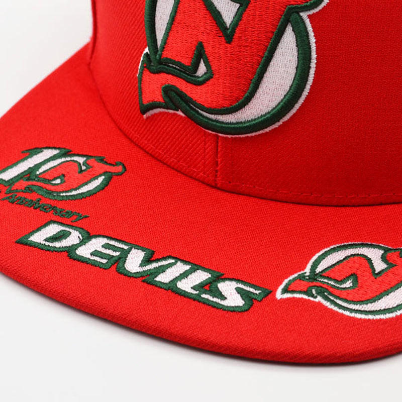 New Jersey Devils Mitchell & Ness NHL HAT TRICK Snapback Adjustable Hat - Red/Green