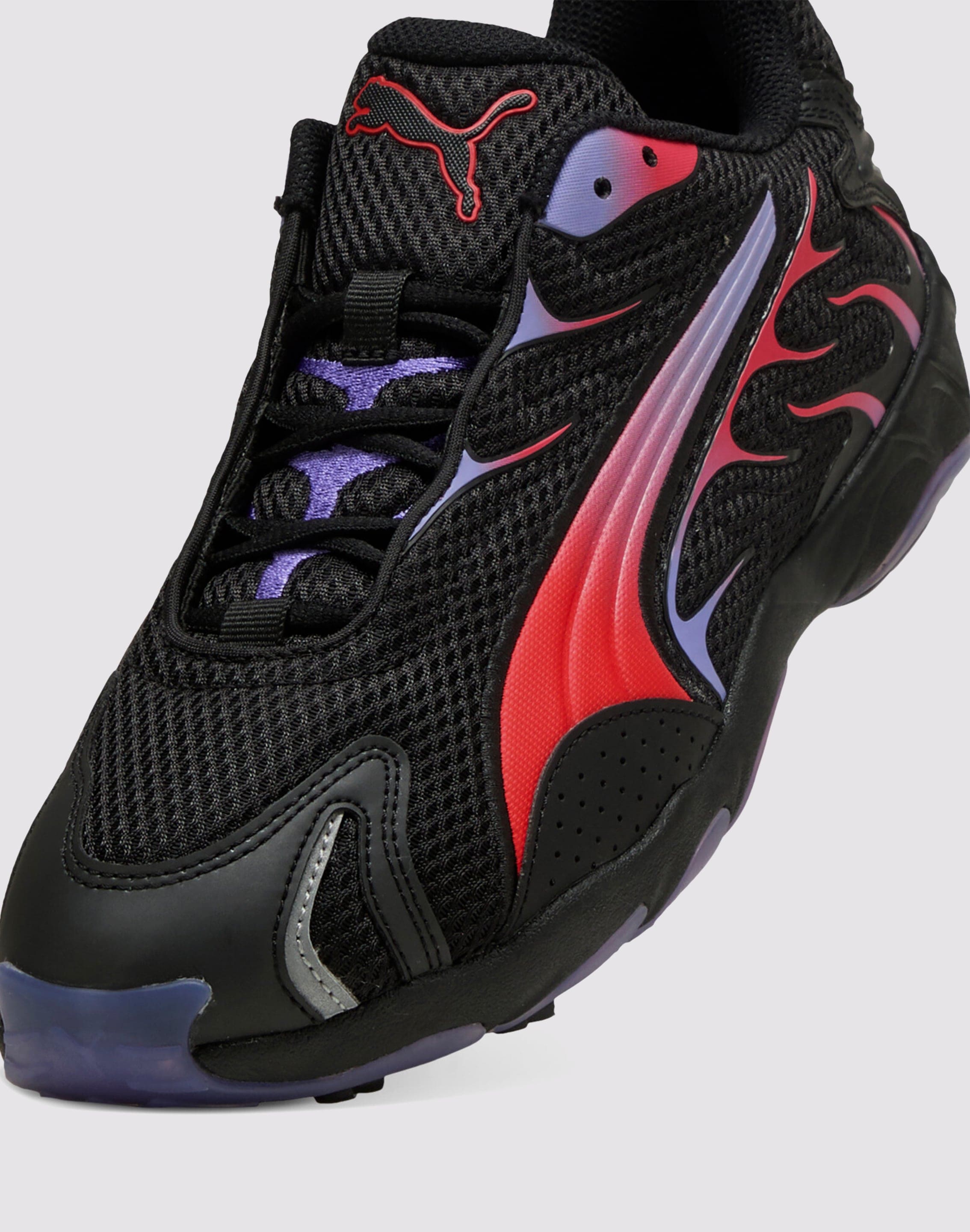 Launched on the cusp of the new millenium, Inhale blends late '90s and early 2000's style with its thick sole, exaggerated contours and daring material mix. Today we’re breathing new life into this silhouette by reissuing it for the streets. With its signature extreme curves in the midsole and flame-like pops of color in the upper, The PUMA Inhale "Black/Red" Men's Shoe is designed for those who dare to be different.