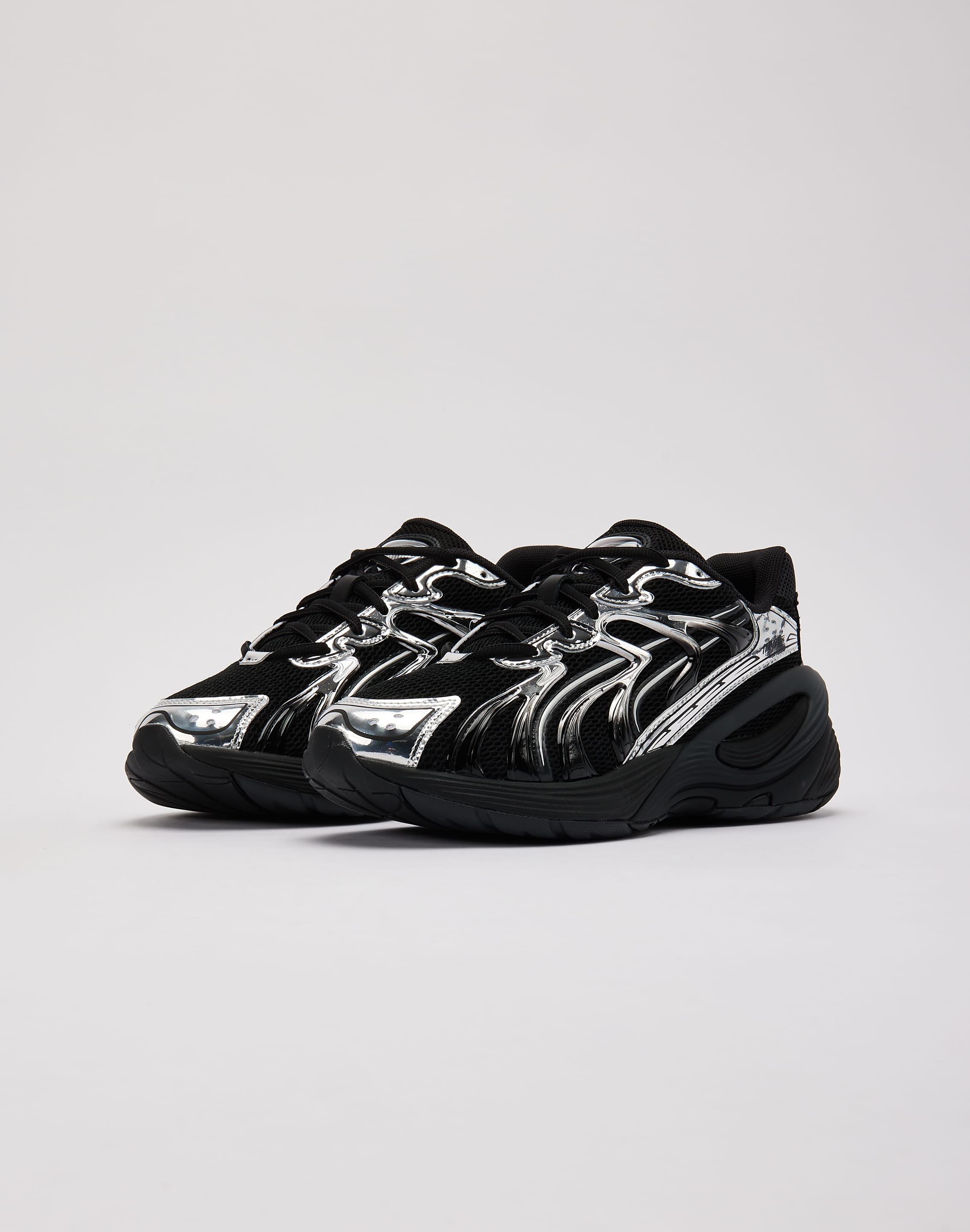 Step into innovation with the cutting-edge PUMA Inverse Dimension. Built with a mesh base, leather overlays, and a clear TPU cage, they seamlessly fuse heritage design with modern technology. Bold PUMA branding and distinctive details ensure every step exudes style and confidence.