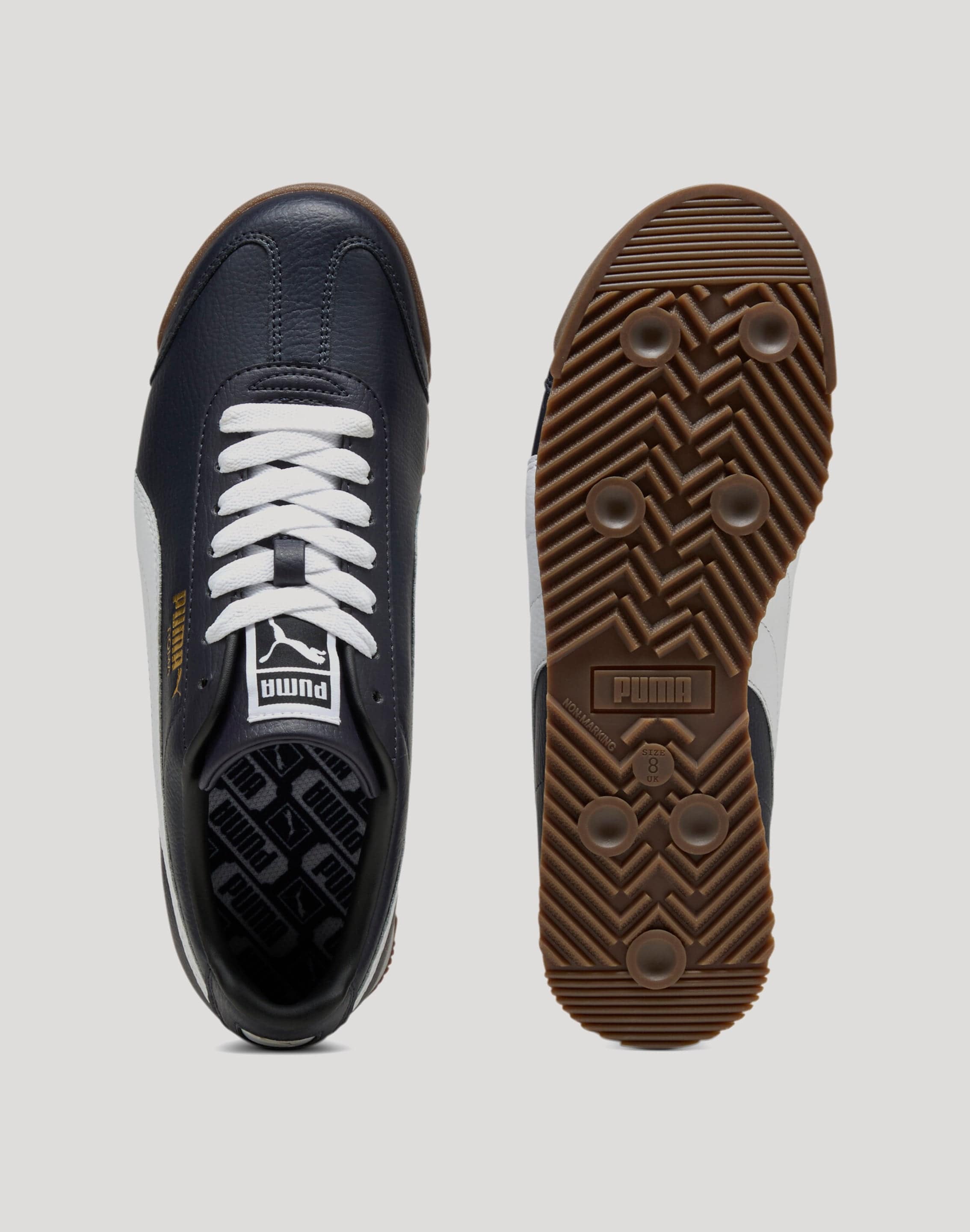 From the 1968 PUMA Archives, the Roma was a lightweight training shoe equipped with a thick, padded tongue and orthopedic arch supports. The PUMA Roma Men's "Navy/White" Shoe returns for the next generation with a smooth synthetic leather upper and clean look and feel.