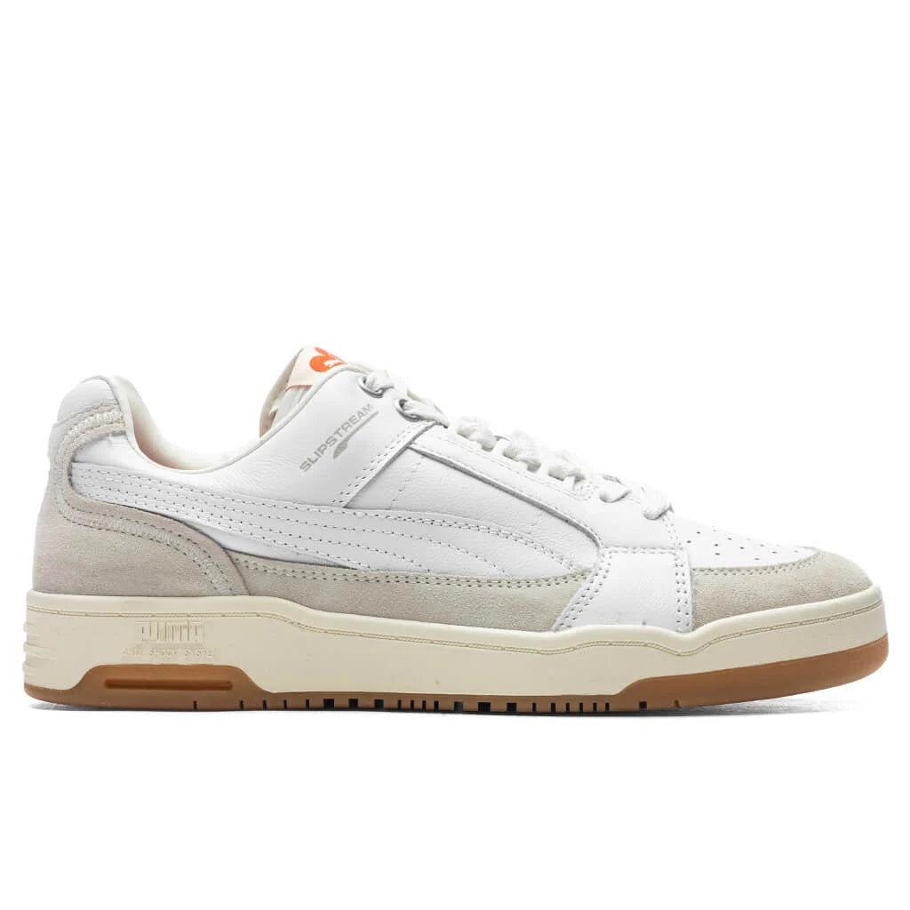 PUMA and Parisian fashion brand AMI join together with an even more elevated take on the iconic Slipstream Lo. This reimagined sneaker spotlights a low-boot construction with a leather upper and suede detailing placed at the signature Formstrip and at the bottom portion of the design. Synthetic lining offers additional comfort, while the perforated toe box and gum rubber outsole provide optimal durability. The co-branded tongue label completes the rest of the look.