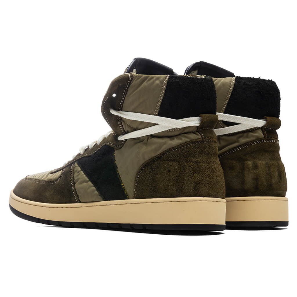 Rhude’s vintage and worn-in approach to footwear is present in the Rhude Recess Hi. The high-top sneaker features a leather upper colorblocked throughout the exterior. Distressed and fading details are seen throughout the design, while perforated holes make an appearance at the toe-box. An off-white lace-up closure is placed, while the tongue receives a padded material for additional comfort. A suede logo at the heel and rubber midsole and outsole complete the look.
