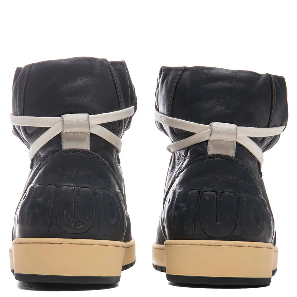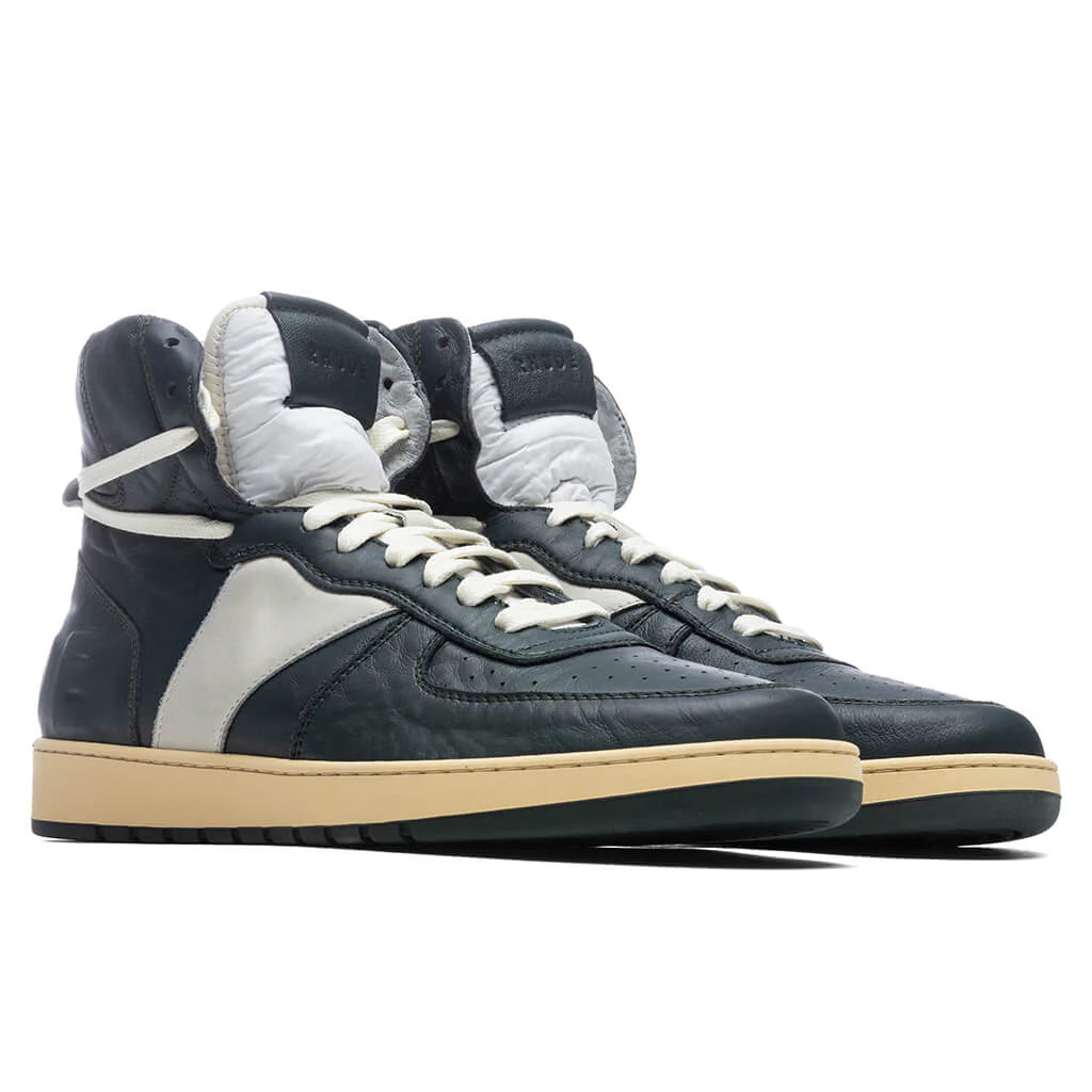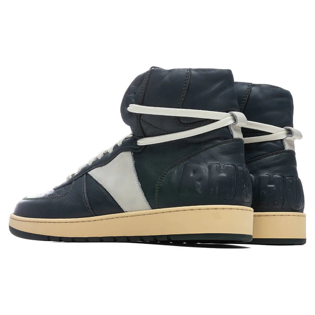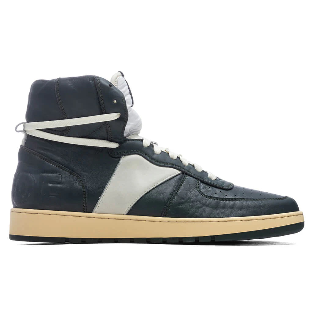 Rhude’s vintage and worn-in approach to footwear is present in the Rhude Recess Hi. The high-top sneaker features a leather upper colorblocked throughout the exterior. Distressed and fading details are seen throughout the design, while perforated holes make an appearance at the toe-box. An off-white lace-up closure is placed, while the tongue receives a padded material for additional comfort. A suede logo at the heel and rubber midsole and outsole complete the look.