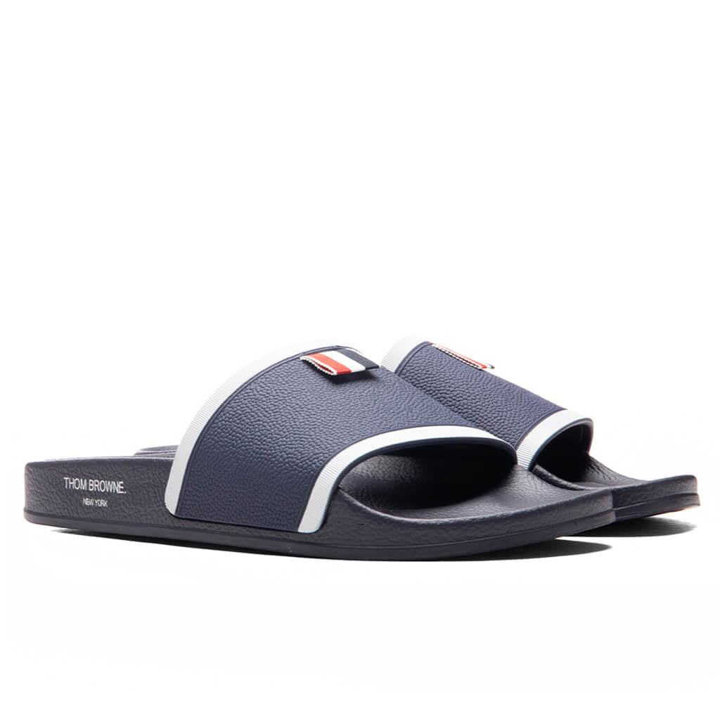 Thom Browne’s elevated aesthetics are present in the Rubber Pool Slide. Featuring a molded rubber construction, the design features single-rubber straps along with grosgrain detailing. Screen-printed branding is seen along the midsole, while the rubber outsole completes the aesthetic.