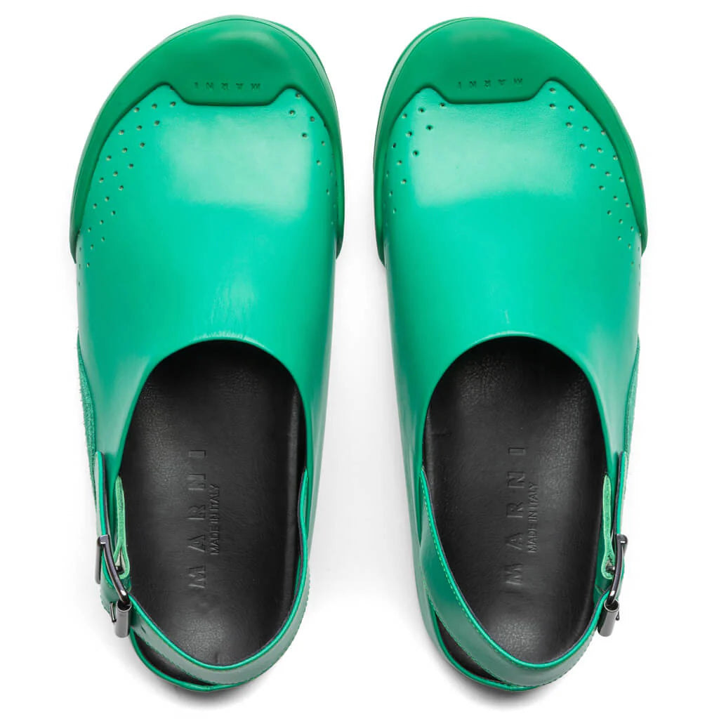 The Marni Sabot makes an impression on any footwear collection. Taking on a calf leather upper, the silhouette utilizes additional suede detailing along with an adjustable heel strap. The metal hardware and rubber sole finishes the rest of the design.