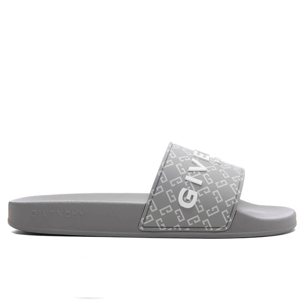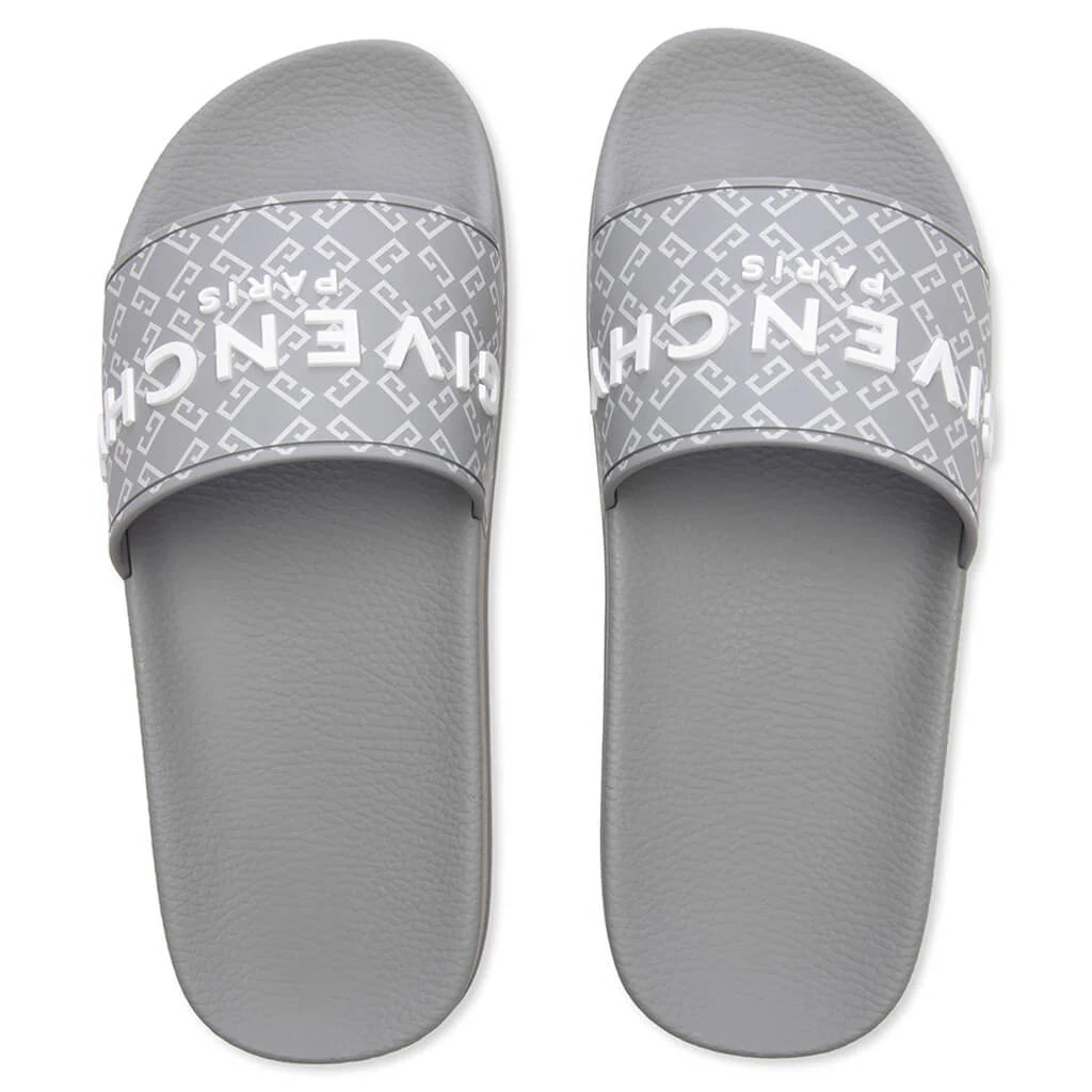 The Givenchy Slide Flat Sandals are composed of 100% polyurethane rubber and have a one-strap design. These slides feature an all-over Monogram 72 print as well as a raised 'Givenchy Paris' logo. The look is completed with an additional logo embossed on the side.