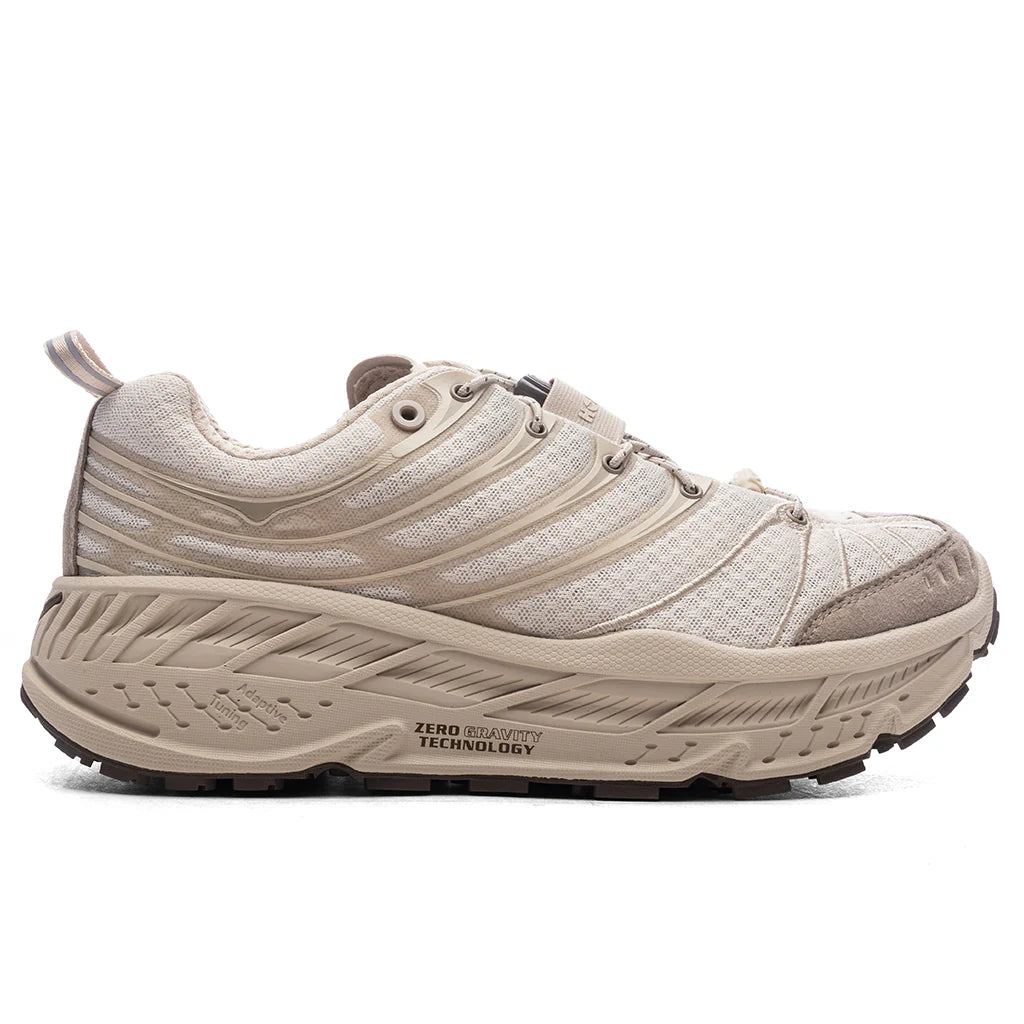 The Hoka One One Stinson Lite Running Shoe in Oat/ Oat Milk are designed with lightweight, breathable fabric, they keep your feet cool and dry during runs. Featuring an oversized midsole, these shoes provide superior shock absorption and stability, making them ideal for both long-distance running and quick sprints. The late-stage Meta-Rocker geometry enhances a smooth and natural stride.