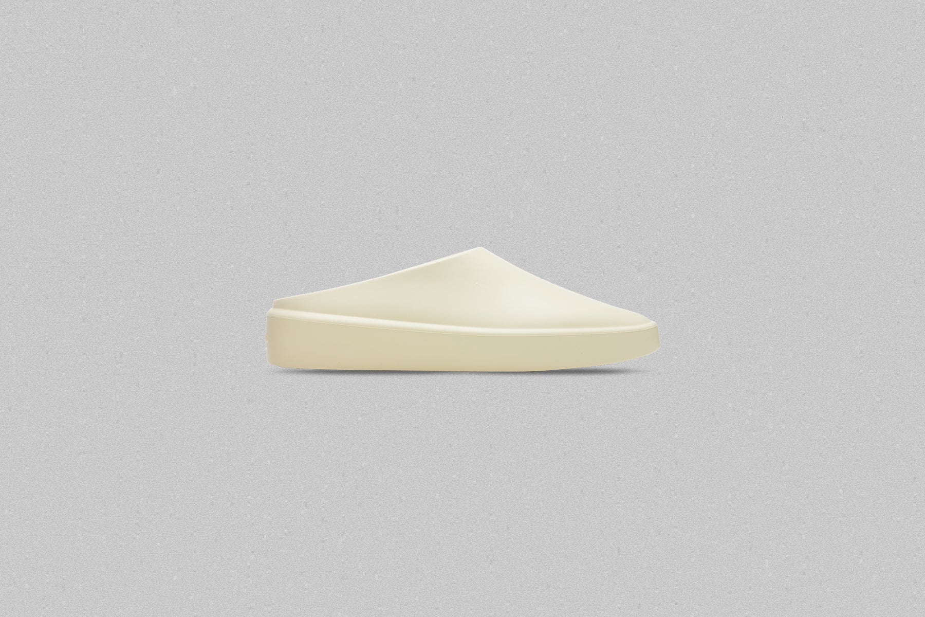 The Luxury Los Angeles-based label Fear of God introduces The California. Made entirely from innovative foam rubber produced in Italy from patented XL Extralight Technology. The Extrabounce compound is light and allows for greater flexibility, comfort, and durability. Backless and made for a slip-on design, the sculptural aesthetic emphasizes functionality by incorporating an inner vent to provide maximum airflow, while the raised tread provides optimal traction and durability. Fear of God branding at the heel ties together the sleek aesthetic.