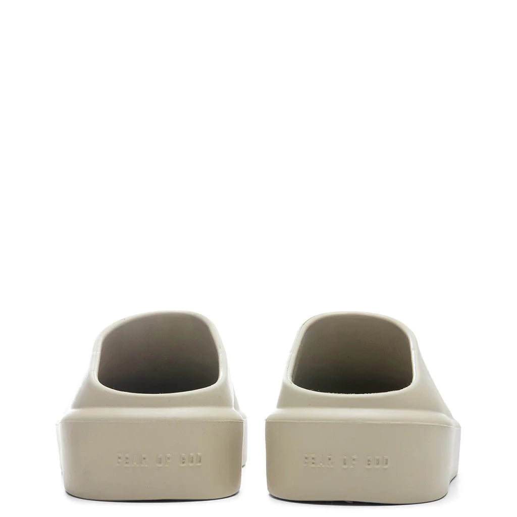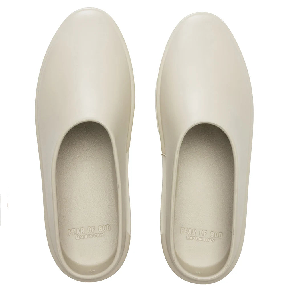 The Luxury Los Angeles-based label Fear of God introduces The California. Made entirely from innovative foam rubber produced in Italy from patented XL Extralight Technology. The Extrabounce compound is light and allows for greater flexibility, comfort, and durability. Backless and made for a slip-on design, the sculptural aesthetic emphasizes functionality by incorporating an inner vent to provide maximum airflow, while the raised tread provides optimal traction and durability. Fear of God branding at the heel ties together the sleek aesthetic.