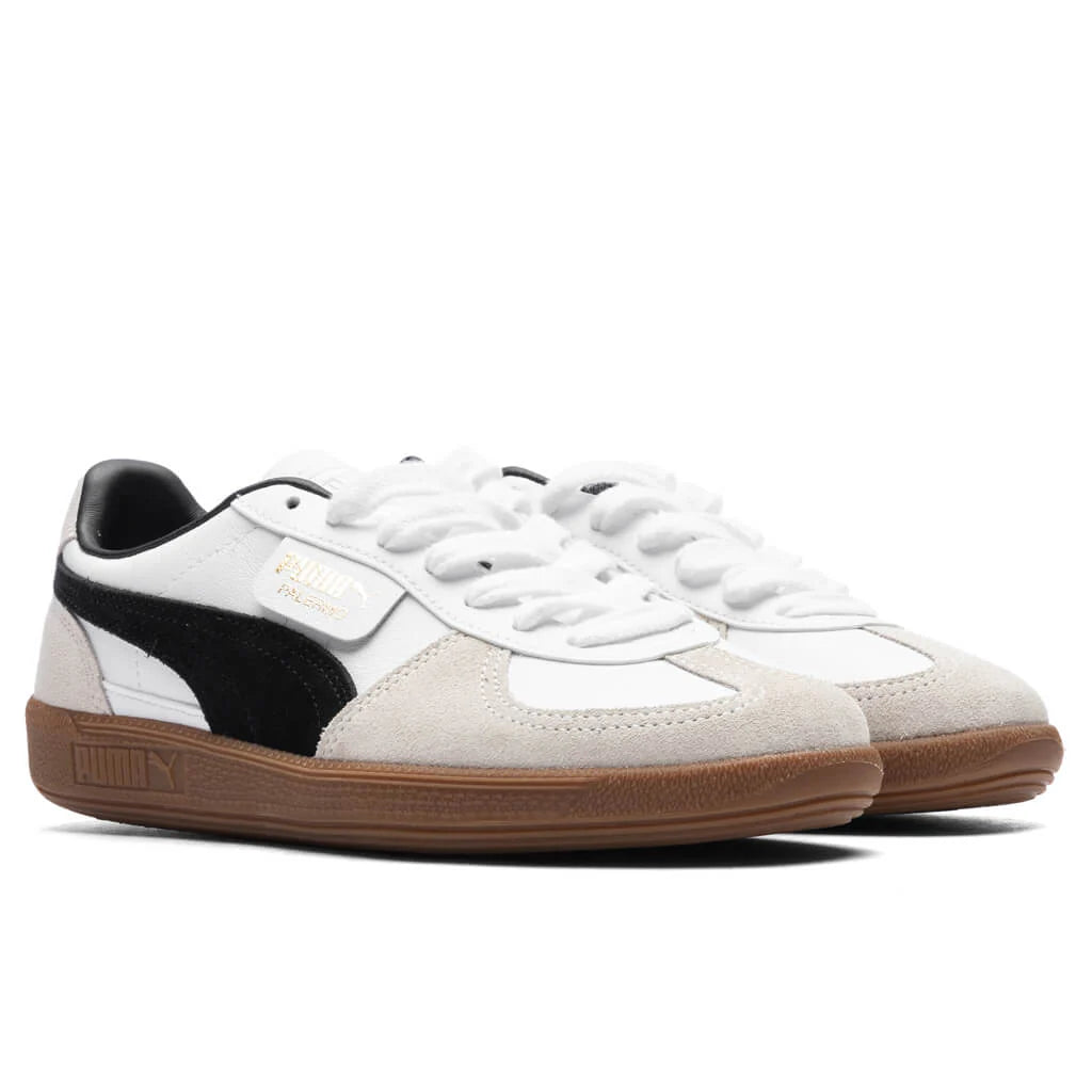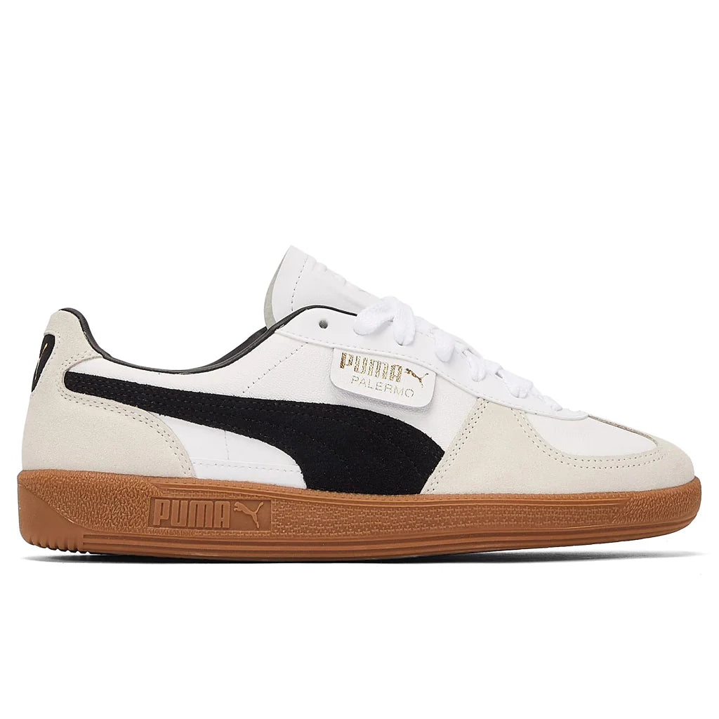 Straight from the archives, the Puma Palermo is a classic silhouette with its signature T-toe construction, bold color blocking + plush materials. The design builds on Puma’s soccer heritage while also catering toward sneakerheads. The newest iteration ‘Black/Feather Grey/Gum’ features a leather upper with suede overlays and a leather Puma Formstrip. The design features Palermo branding in a gold-foil manner at the upper as well as at the heel. A gum rubber outsole underneath completes the remainder of the sneaker.