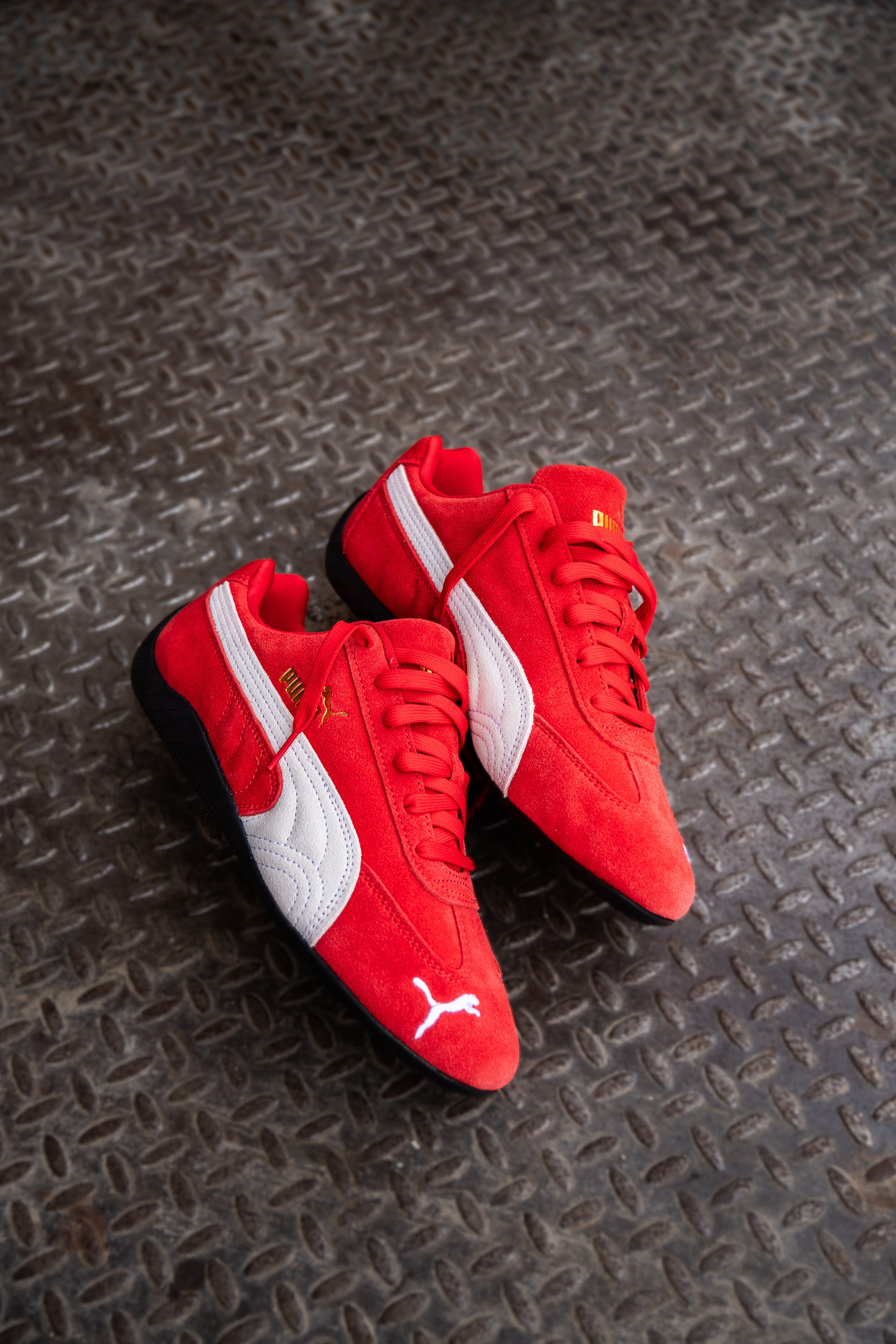 An icon of racing culture, the PUMA Speedcat has been synonymous with speed, precision, and unparalleled performance for over 25 years. It originated as a fireproof Formula 1® footwear style, but over the decades it found itself on a new circuit – transcending the tracks of Monaco for the streets of global fashion capitals. Wrapped in soft suede and premium leather, this silhouette is reissued in its original red and black colorways with a new PUMA Cat Logo at the front.